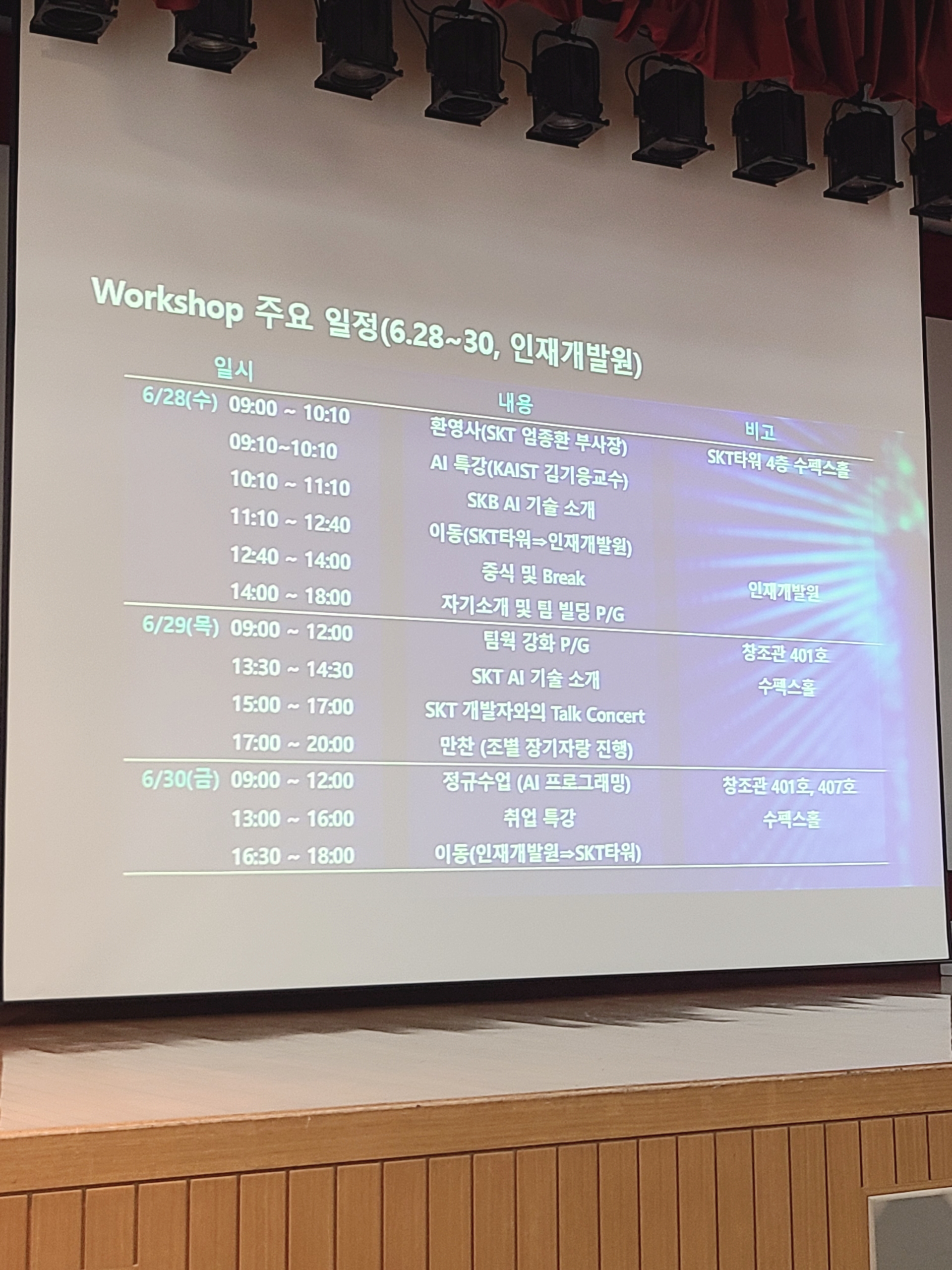 첫 째주 수요일부터 금요일까지 2박3일 워크샵이 진행되었다.
