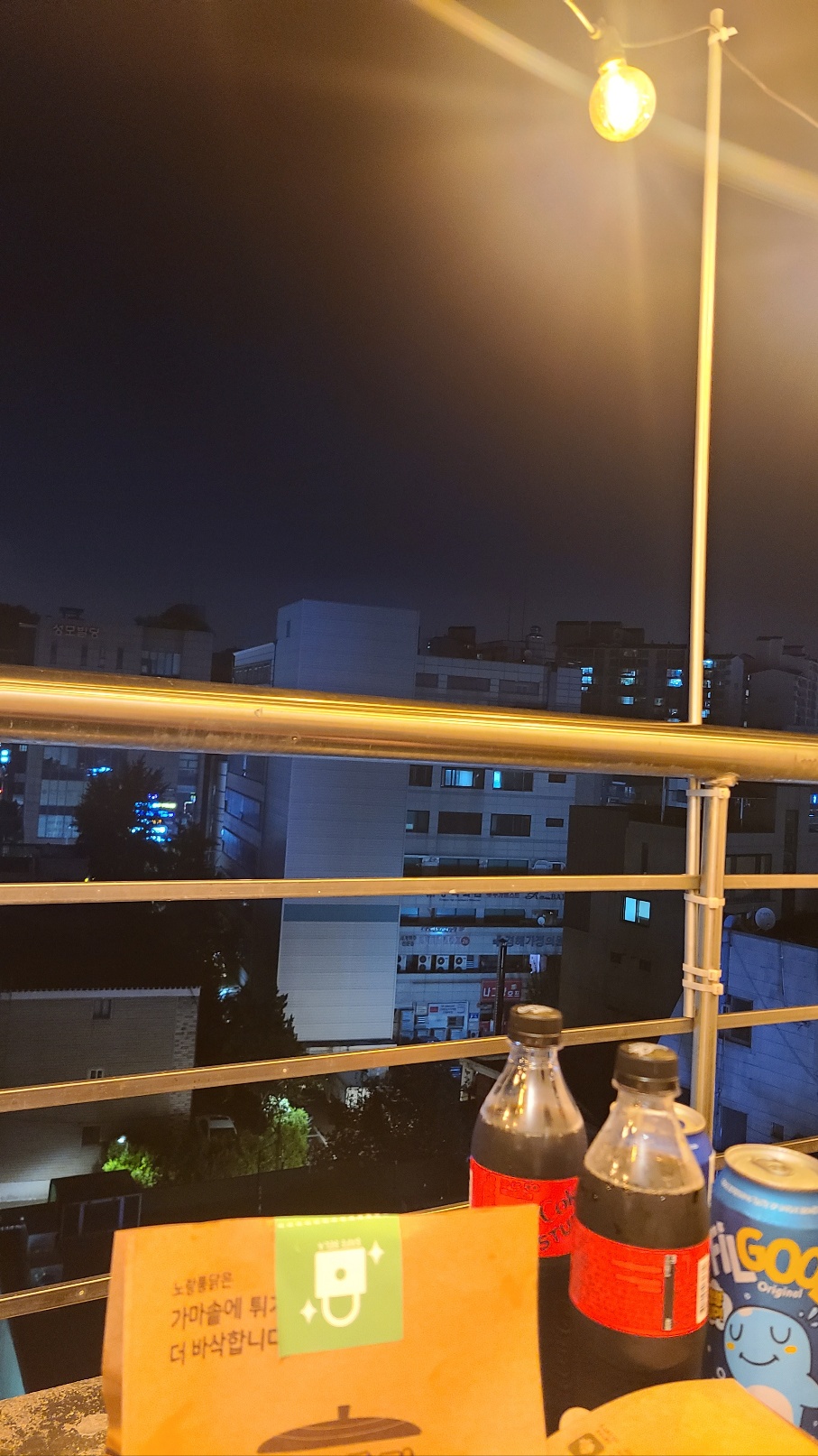 고시원 테라스(?)에서 동생이랑 치맥도 먹고.