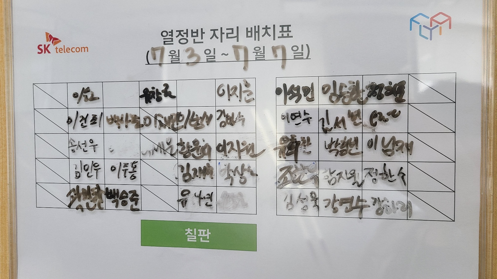 자리는 매주 월요일마다 선착순으로 이름을 적어서 결정한다!