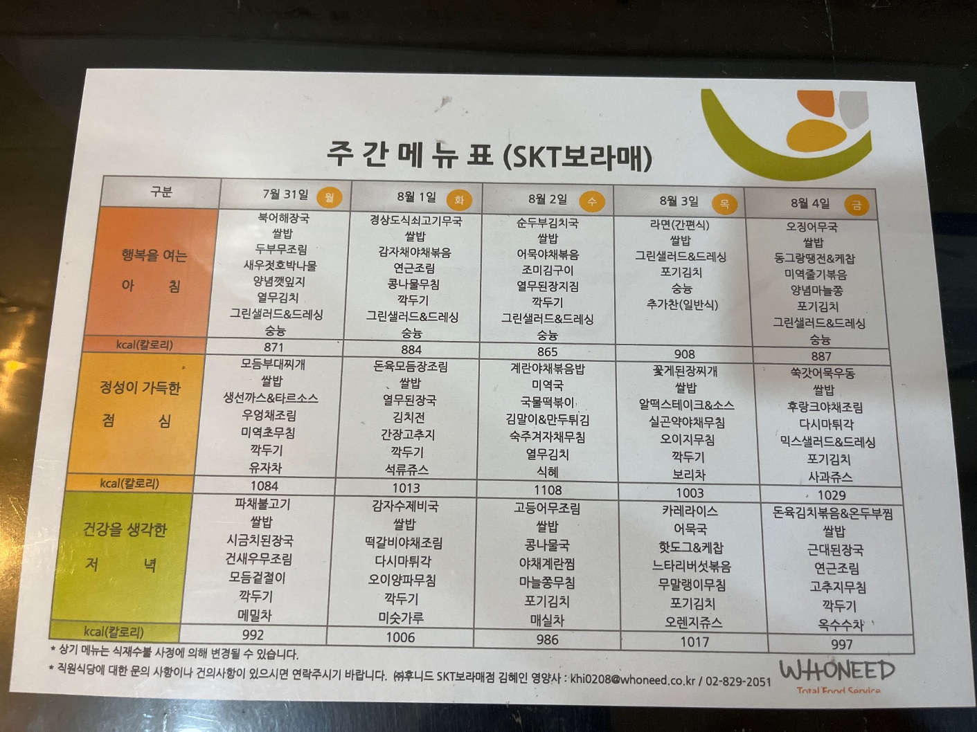 프로젝트 기간이 되면, 보라매 / 을지로 중 선택해서 출근이 가능한데, 을지로를 선택하면 식사 제공이 안된다.