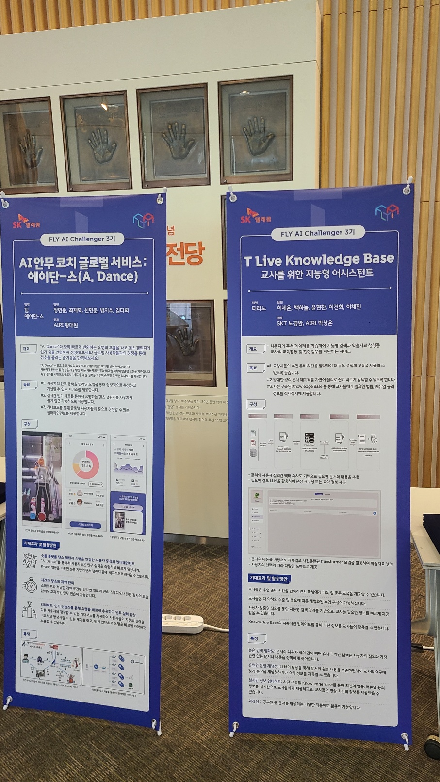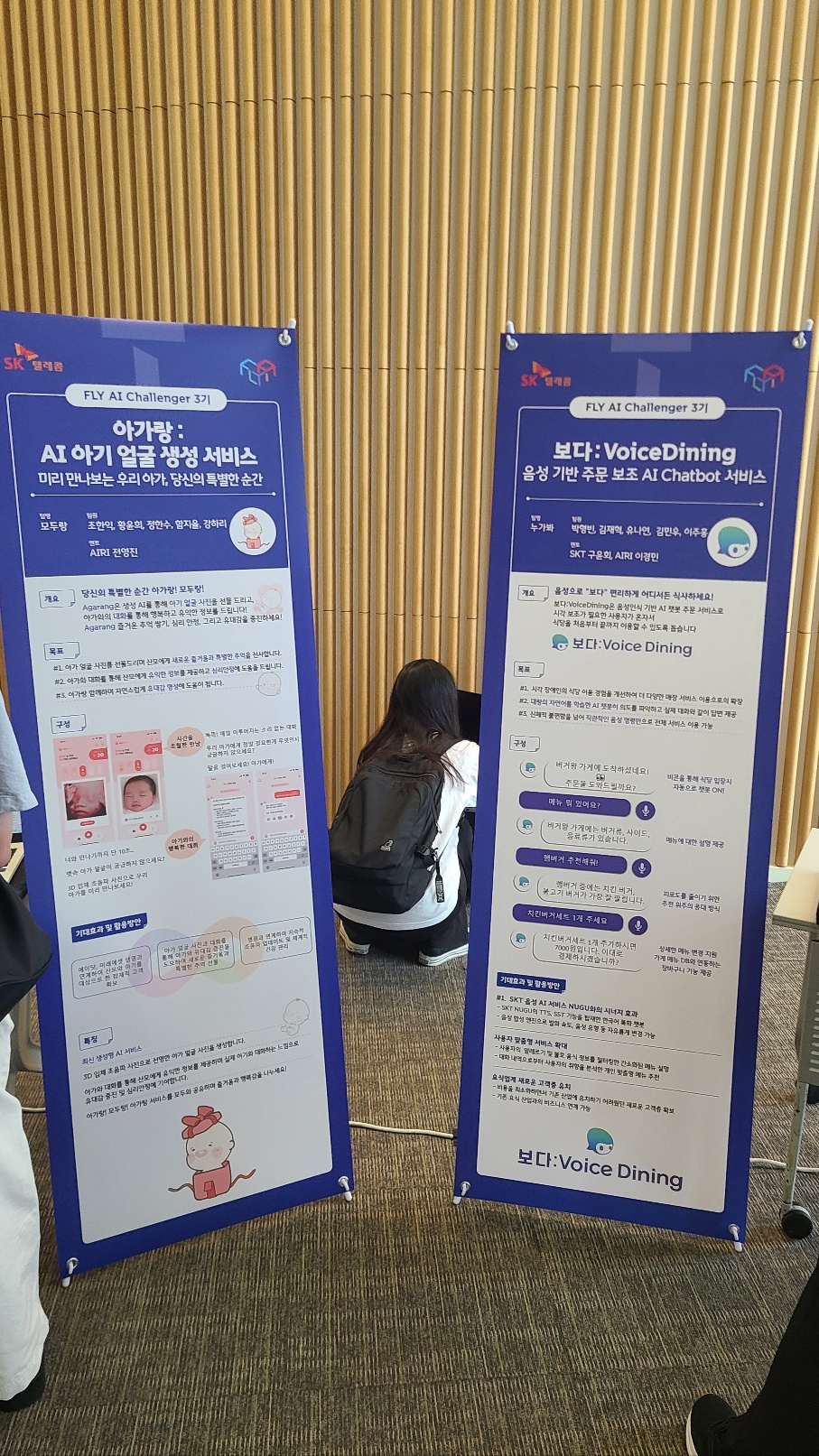 아래 사진들은 SKT FLY AI 3기 팀들의 프로젝트 배너들이다. 각 팀들이 어떤 프로젝트를 했는지 궁금해할 것 같아서 찍어보았다.