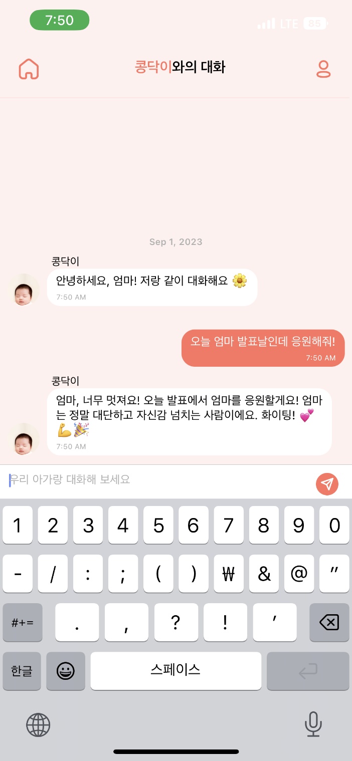 오늘 아침에 윤희누나가 오면서 콩닥이랑 대화했는데 이렇게 응원을 해줬다...! 우리 콩닥이 최고!
