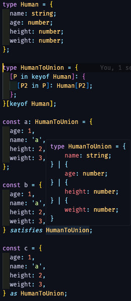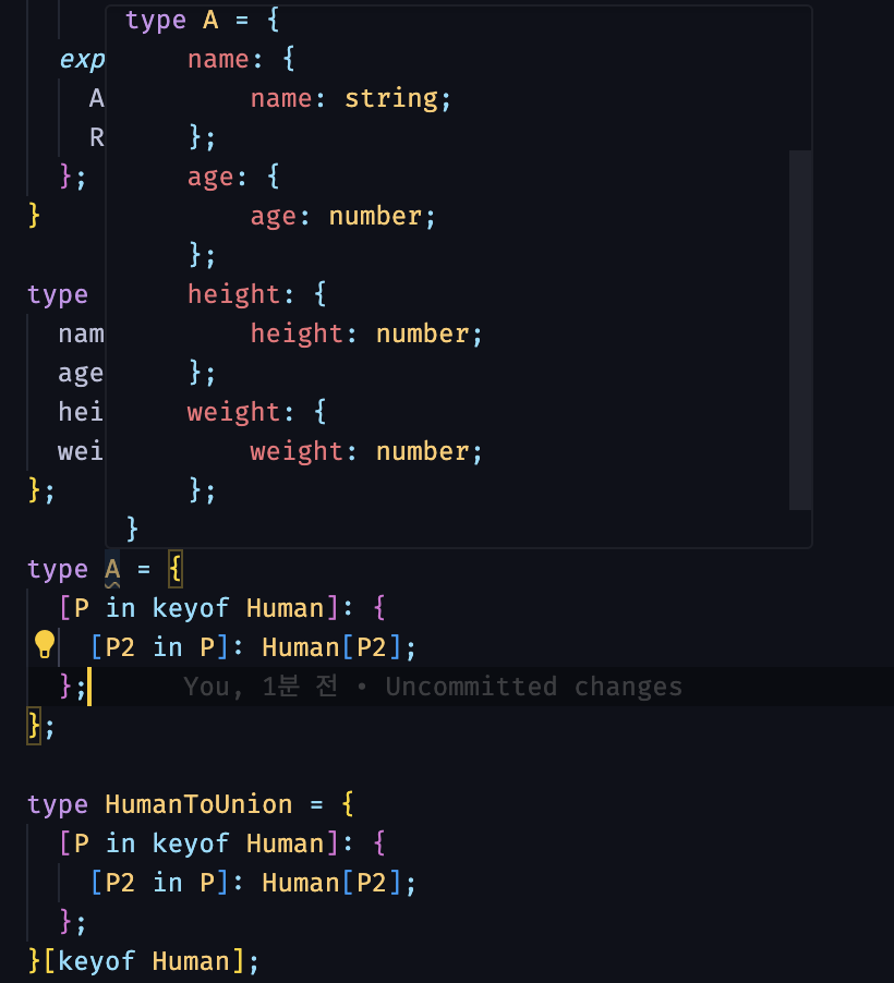 A라는 타입을 임시로 [keyof Human]을 붙이지 않고 만들면 이렇게 추론이 된다.