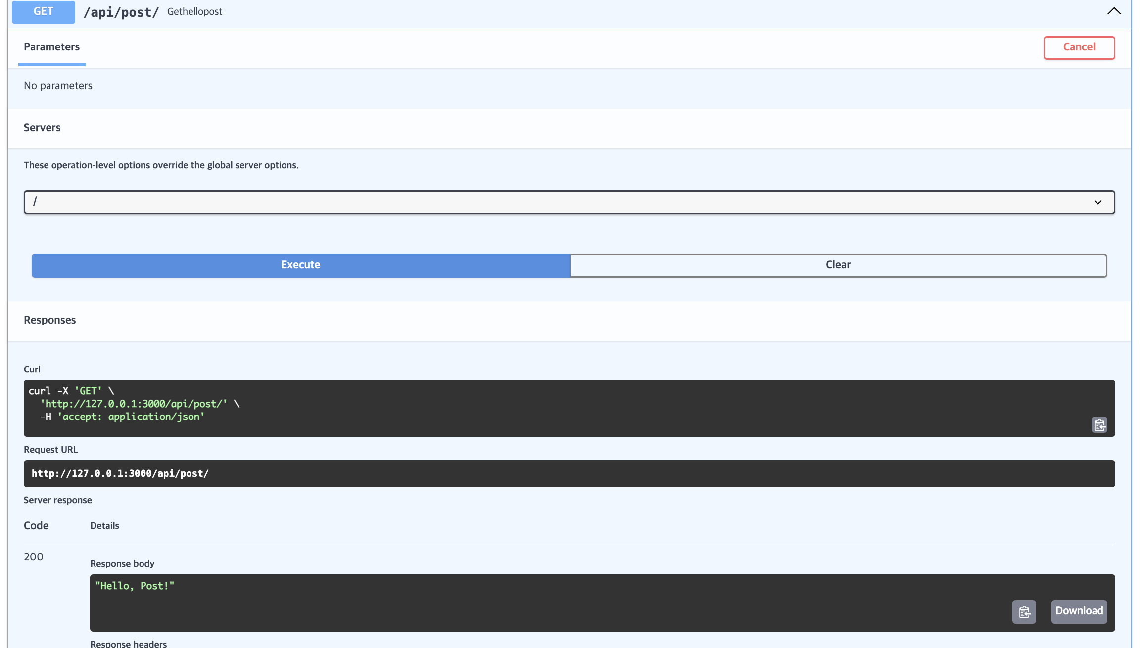 /post 경로로 GET 요청이 들어오면 "Hello, Post"를 사용자에게 리턴하도록 만드는 것