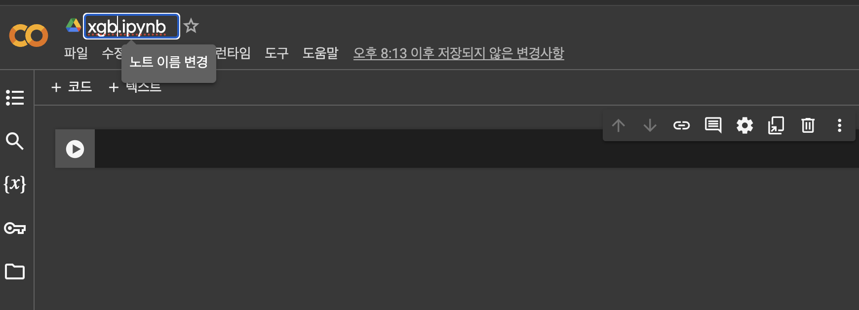 그리고 파일 - 새 노트를 클릭해서 새 노트를 만들고 파일 명을 xgb.py 로 변경해보자.