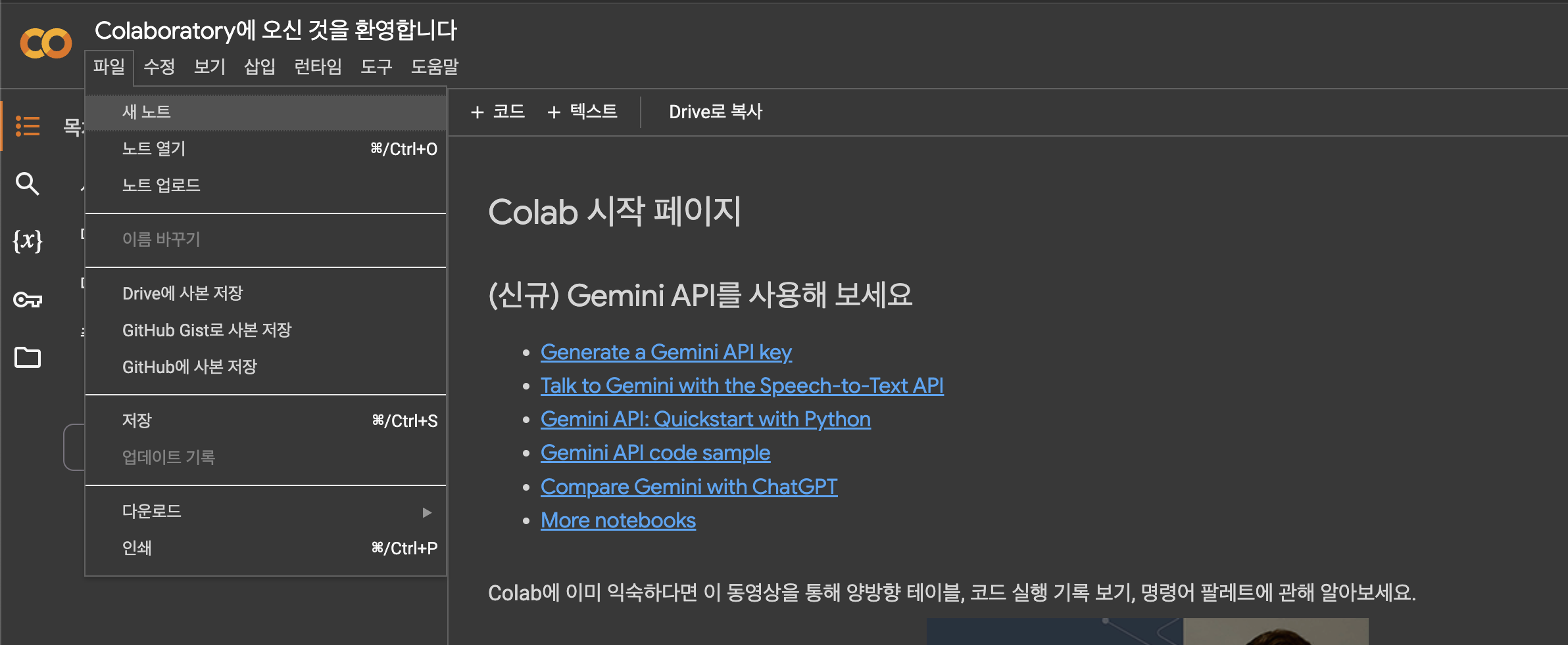 먼저, Colab에 들어가보자. 구글 계정만 있으면 누구나 무료로 Colab을 사용할 수 있다.