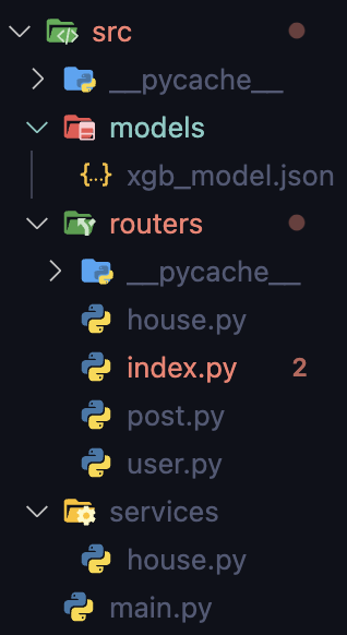 xgb_model.json 파일을 models폴더에 넣어주고, services 폴더를 만들어서 house.py 파일을 만들어주자.
