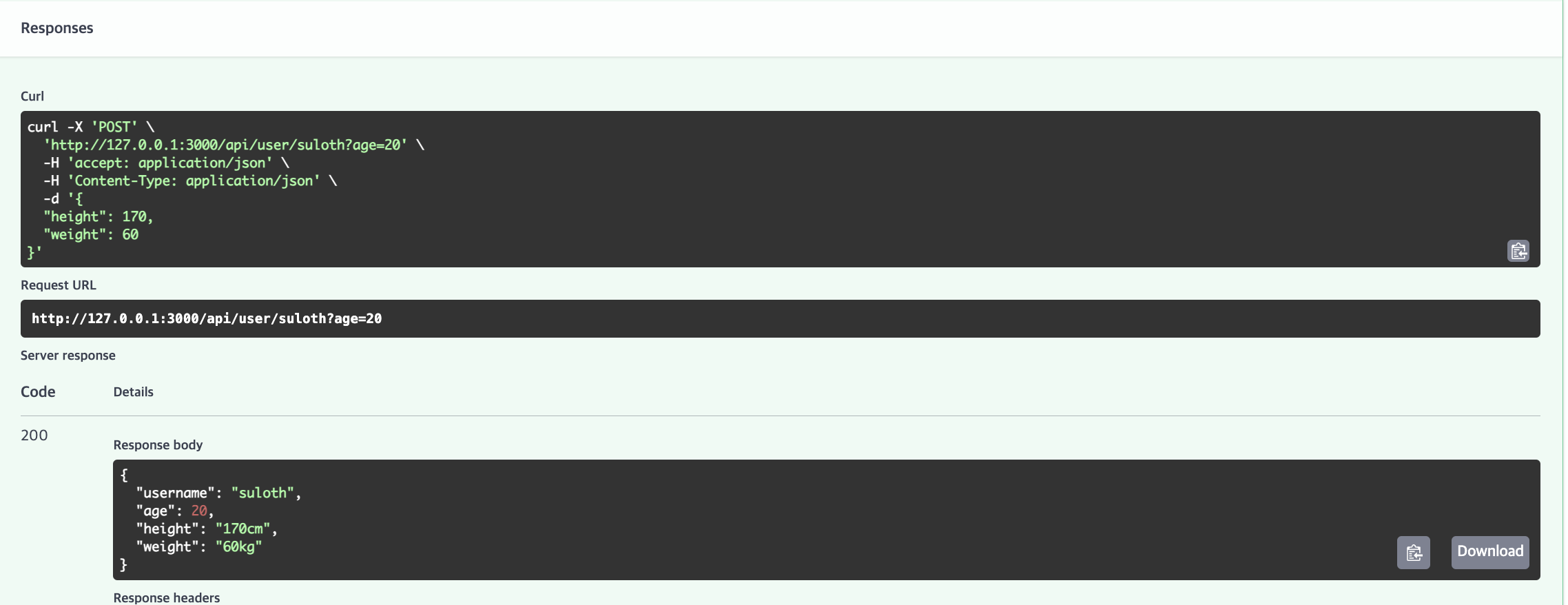 ex) Post http://127.0.0.1:3000/api/user/suloth?age=20