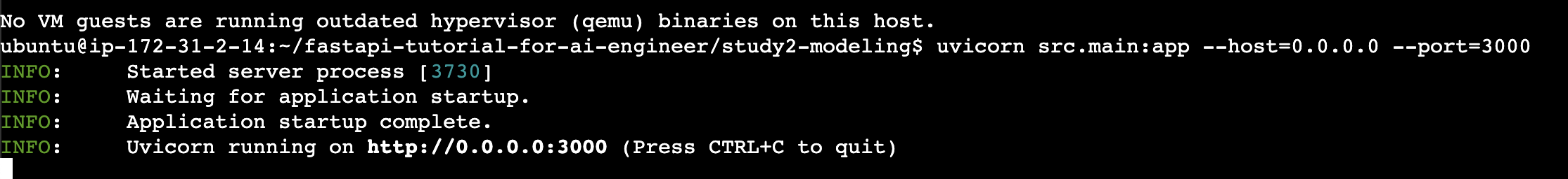 그리고 uvicorn을 사용해 서버를 실행시켜보자.