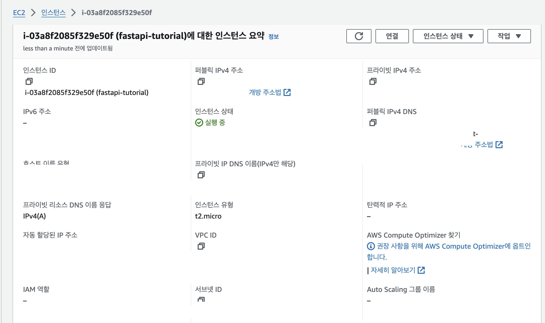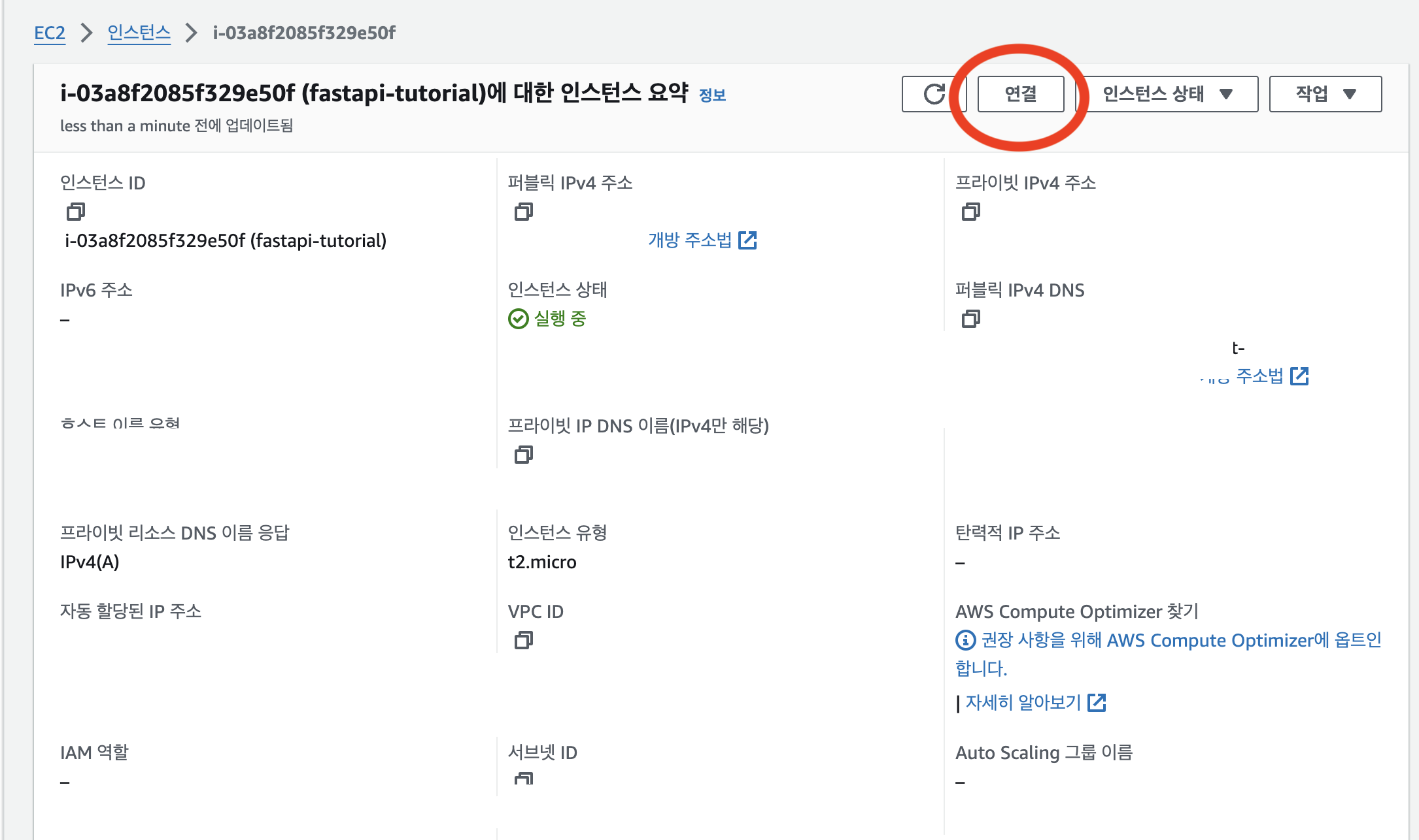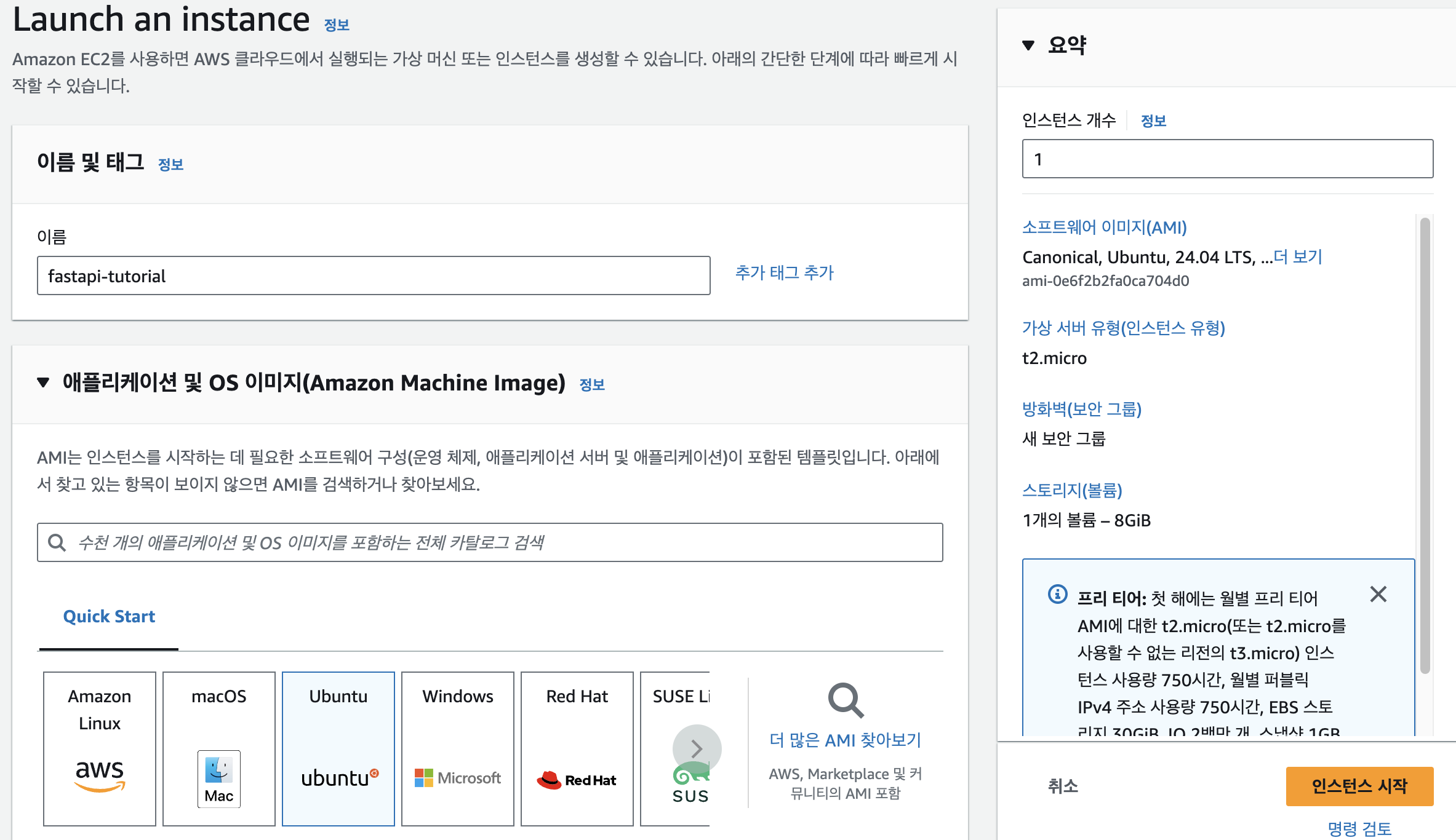 ec2 instance의 이름을 fastapi-tutorial 로 지어주자.