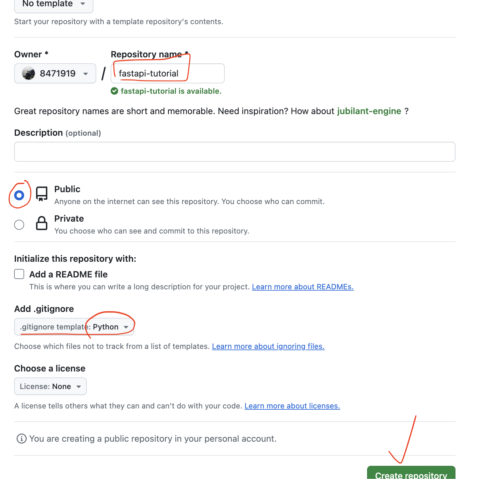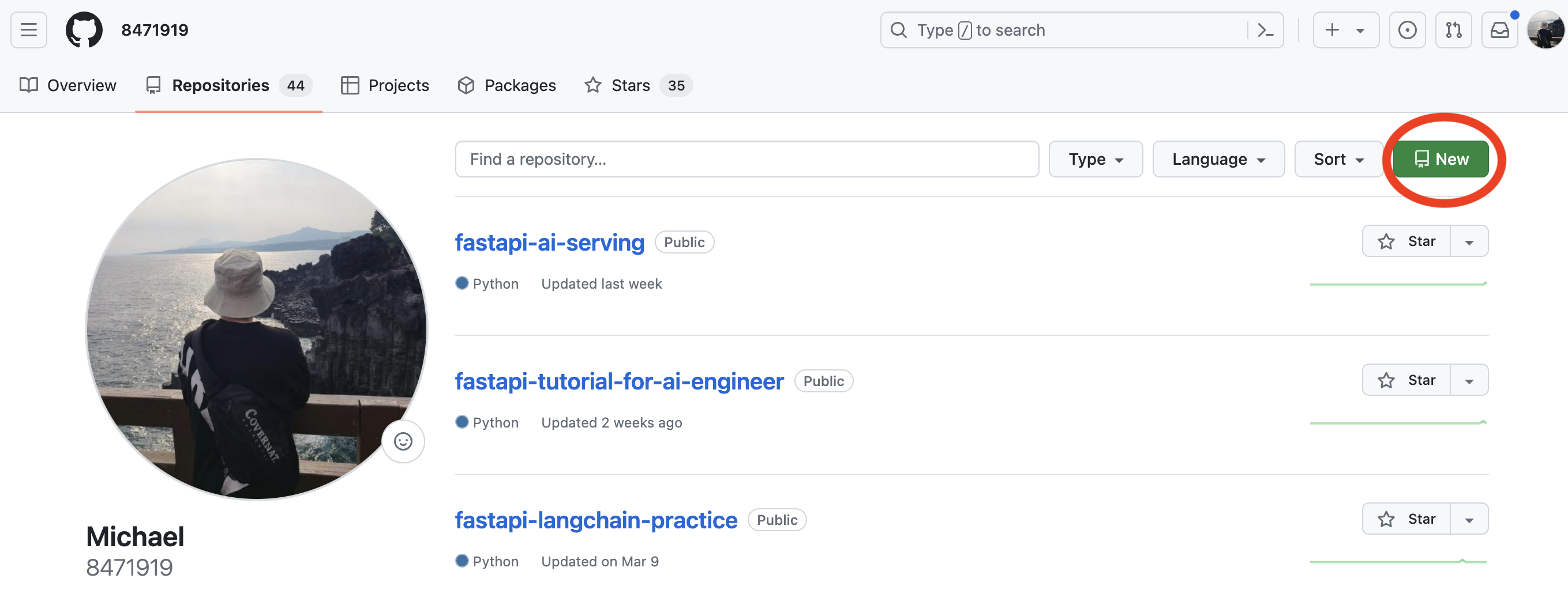 그리고 내 컴퓨터에 있는 fastapi 코드를 github로 올리기 위한 명령어를 작성하자.