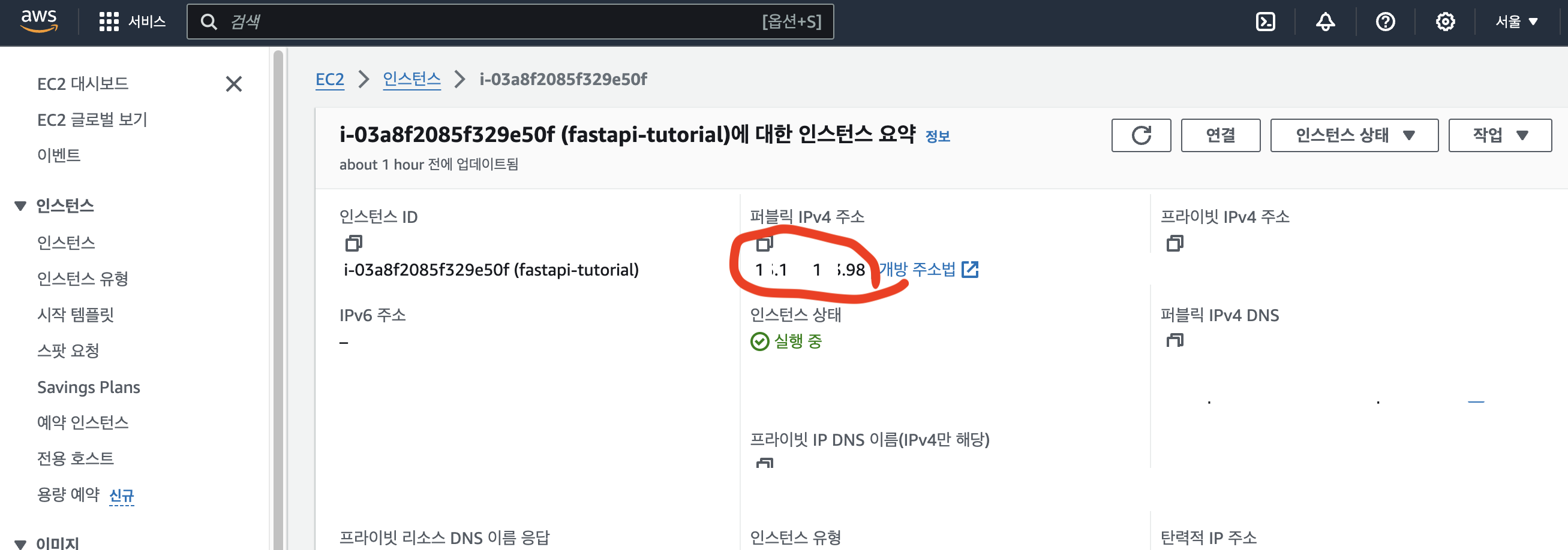 (참고로 해당 ip는 일정 주기로 변경되니, 고정해주고 싶으면 탄력적 ip라는것을 사용해서 고정해야한다)
