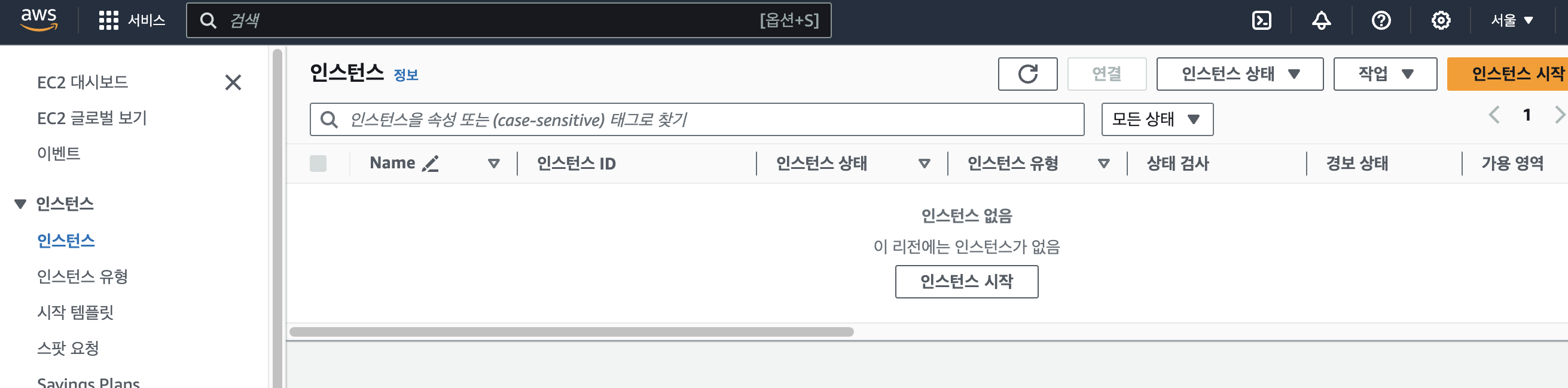 만약 인스턴스 목록을 봤는데 아무것도 안떠도 당황하지 말고 새로고침을 눌러보자.