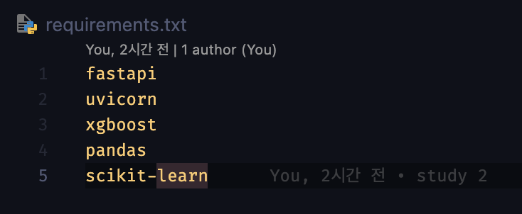 그리고 맨 위에서 작성했던 requirements.txt 파일을 이용해서 필요한 패키지들을 설치해줄 것이다.