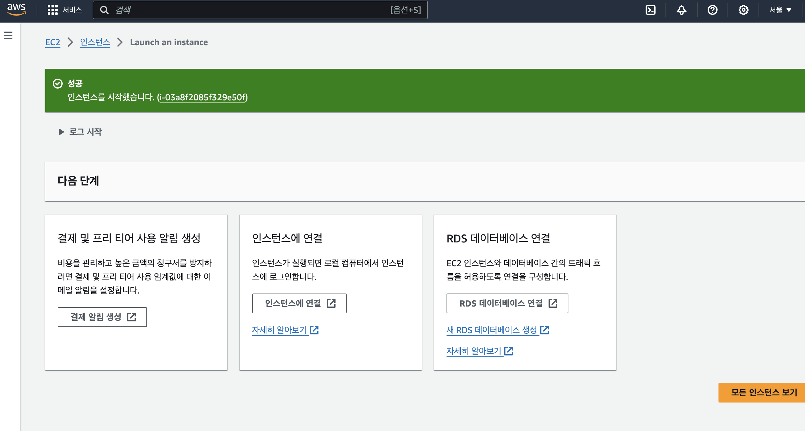 그리고 인스턴스가 만들어지면 모든 인스턴스 보기를 누르자.