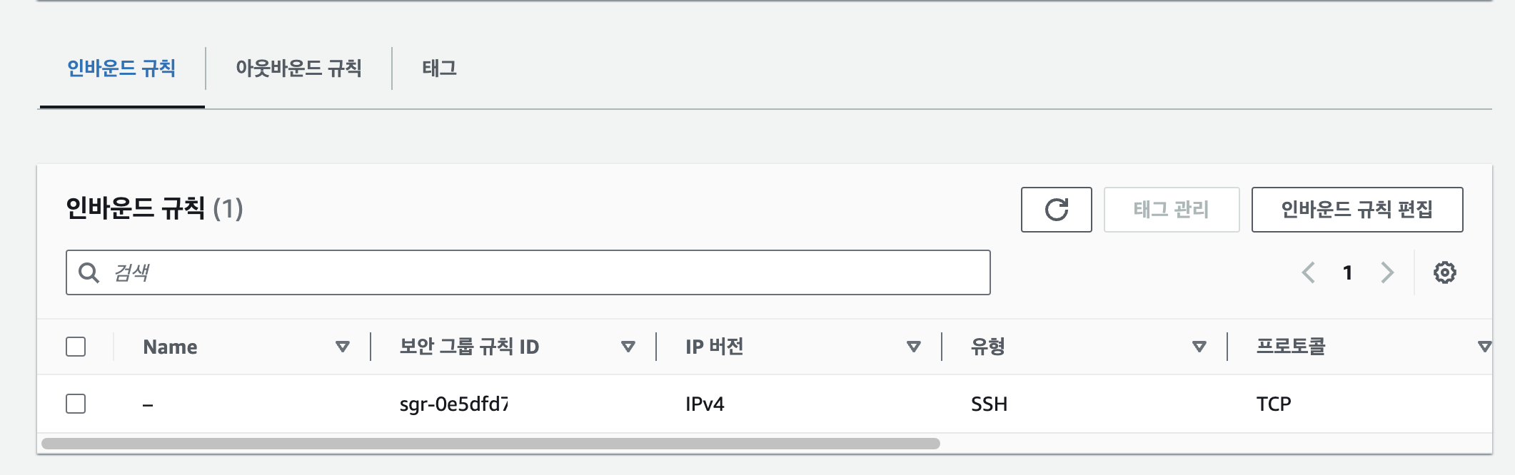 여기서 규칙 추가를 누르고, 위 사진에서 두 번째 인바운드 규칙(-) 처럼 만들자.