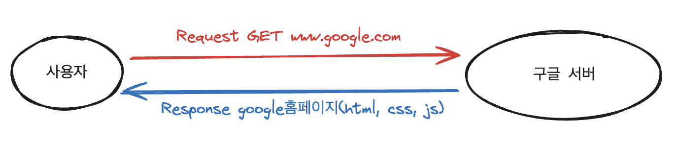 먼저, 사용자가 구글 주소를 주소창에 입력해서 엔터를 누르면 빨간 화살표에 해당하는 동작을 하게 됩니다.