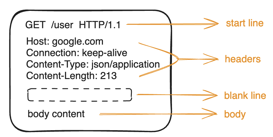 위를 해석해보면 HTTP 1.1 버전 통신을 하는데, user라는 리소스를 받아오는(GET) 요청이다. 라는 것을 알 수 있습니다.