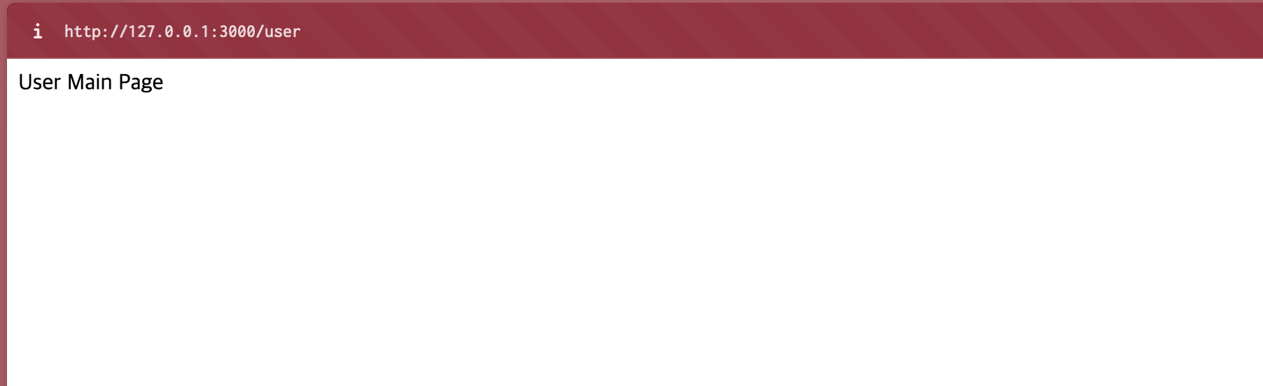 이제 브라우저를 열고 주소창에 http://127.0.0.1:3000/user 를 입력하면 다음과 같은 화면이 뜨는 것을 볼 수 있습니다.
