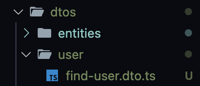 먼저, dtos 폴더에 user폴더를 만들고, 그 안에 find-user.dto.ts 파일을 만들어줍시다.