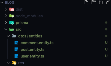 그리고 그안에 user.entity.ts , post.entity.ts , comment.entity.ts 파일을 생성해주세요.