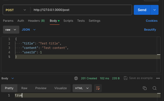 async createPost(body: CreatePostBodyDto): Promise<true> {