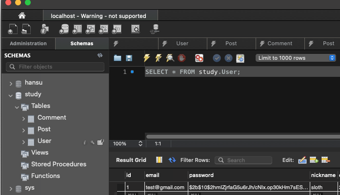 - UserEntity를 만든 것처럼, PostEntity, CommentEntity 만들어오기