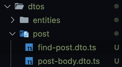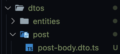 dtos폴더에 post 폴더를 생성하고 post-body.dto.ts 파일을 만들어줍시다.