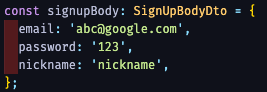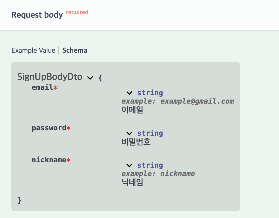 그러면 UserEntity를 이용해서 SignUpBodyDto를 만들었으니, sign-up 로직의 body부분이 Swagger에 적용이 되어야하겠죠?