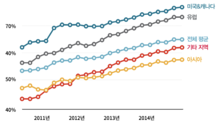 인게이지먼트는 서비스마다 DAU, MAU를 측정하는 기준이 다르고, App Annie나 Koreanclick등 트래킹 서비스에서 보여주는 수치도 대부분 추정치에 가깝기 때문에 서비스 간의 비교가 쉽지 않다.