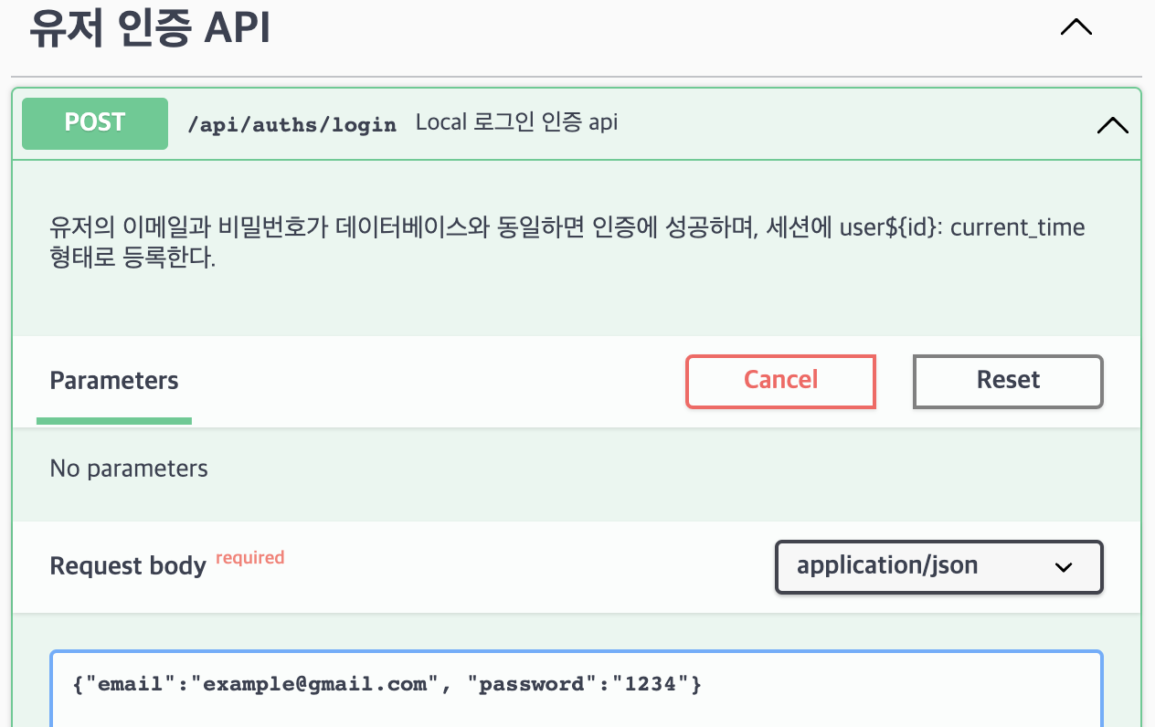 이제 DB에 테스트 유저를 미리 하나 등록해놓고, 서버를 실행시킨 후, Swagger에 들어가자.
