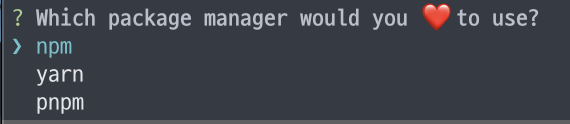 그러면 다음과 같은 글이 뜰텐데, 키보드의 화살표로 npm을 골라주고 엔터를 눌러줍니다.