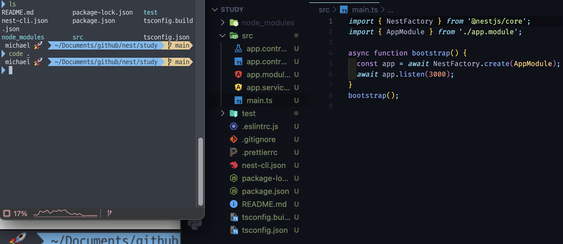 저는 ~/Documents/github/nest 폴더에서 명령을 입력하겠습니다.