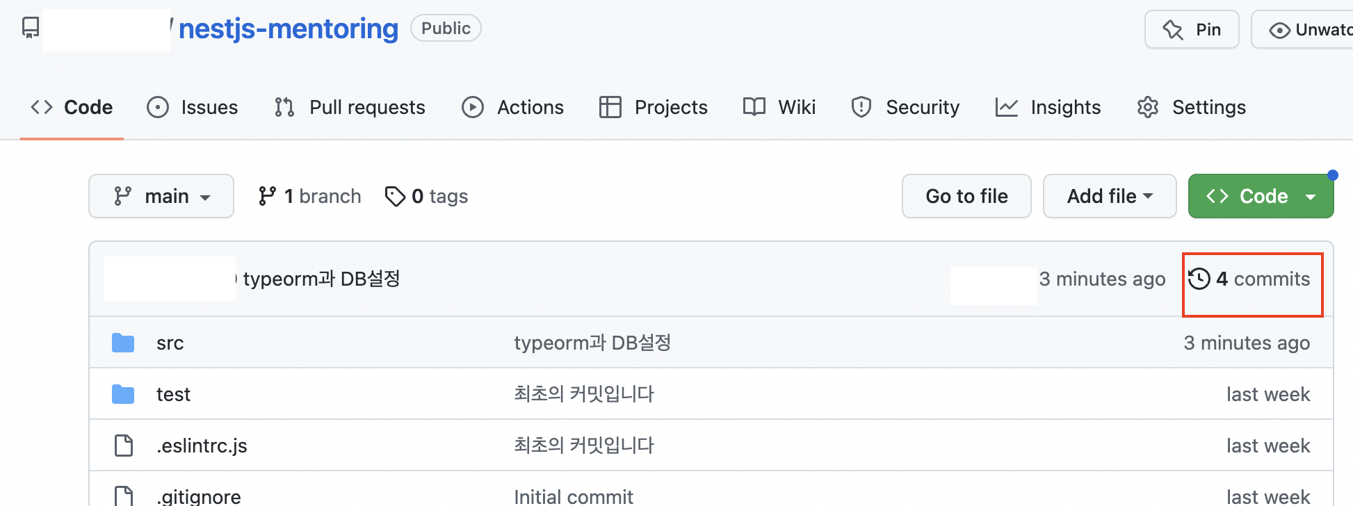 여기서 commits 을 클릭하면, 다음과 같이 방금 push한 커밋을 볼 수 있습니다.