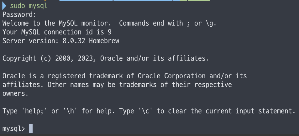 brew services start mysql 명령어를 통해 시작을 해주어야 합니다.