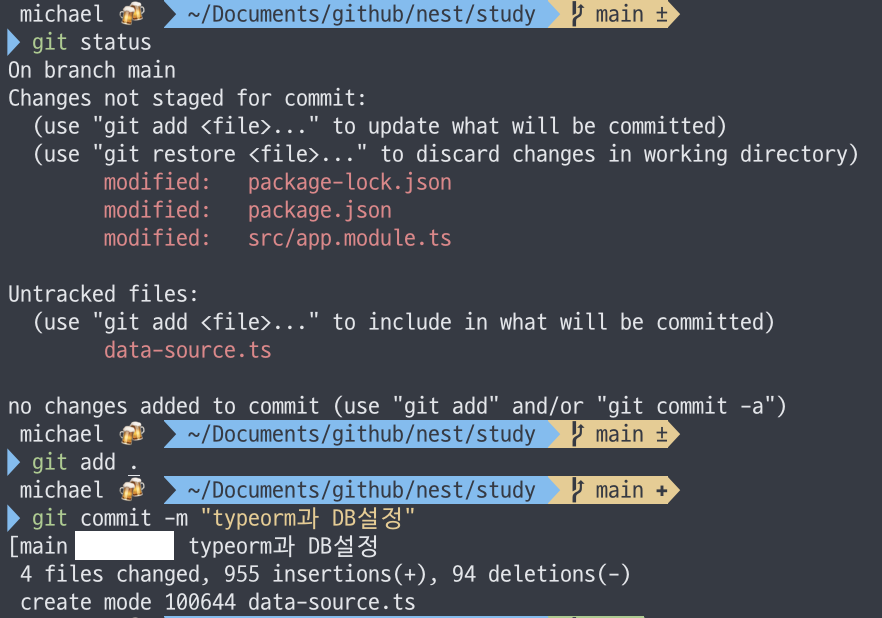 실패했다면, data-source.ts 파일에 type, host, port, username, password, entities 중 오타가 있거나 잘못 설정한 것이 있는지 확인해봅시다.