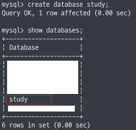그 후, DB가 생성되었는지 show databases; 명령으로 확인합니다.