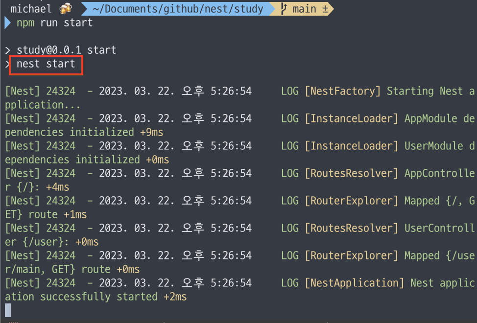 ex) 위 사진에서 scripts에 "start": "nest start", 라는 명령어가 있을텐데, 이를 터미널에서 npm run start 를 입력해주면 자동으로 nest start 명령어가 실행됩니다.