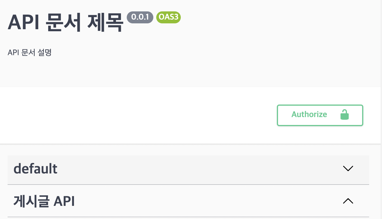 Swagger 문서를 새로고침해보면, 다음과 같이 Authorize 아이콘이 생깁니다.