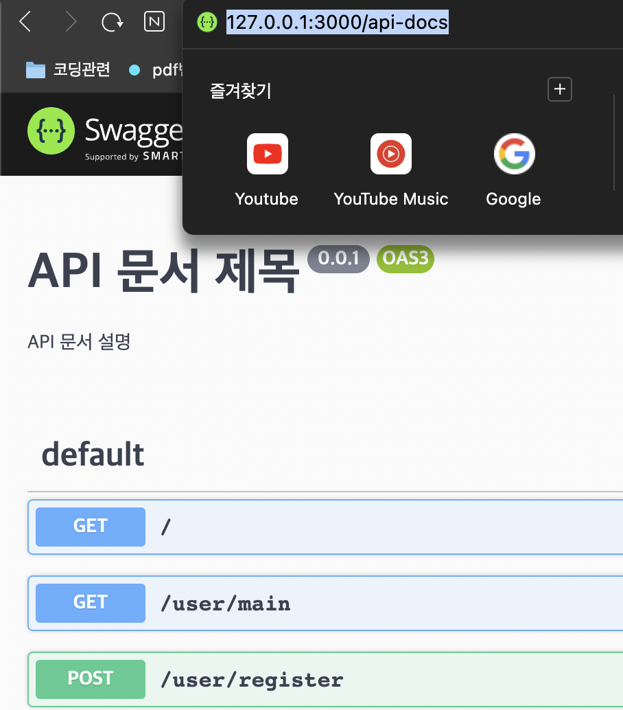 코드를 이렇게 수정한 후, 서버를 재시작해서 swagger를 켜보면